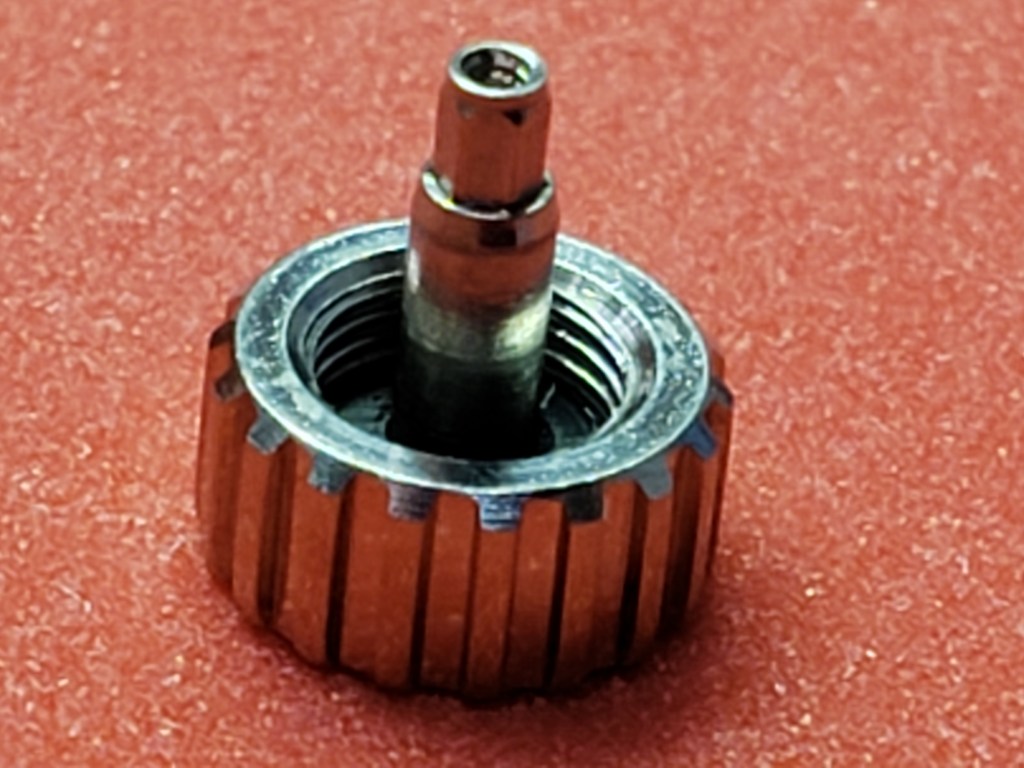 Corona total de acero inoxidable con junta de goma plana, roscada en tubo de caja de acero con doble junta de goma para proteger el mecanismo de la intromisión del agua y el polvo.