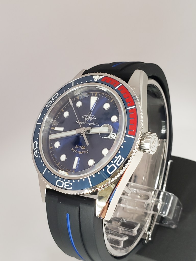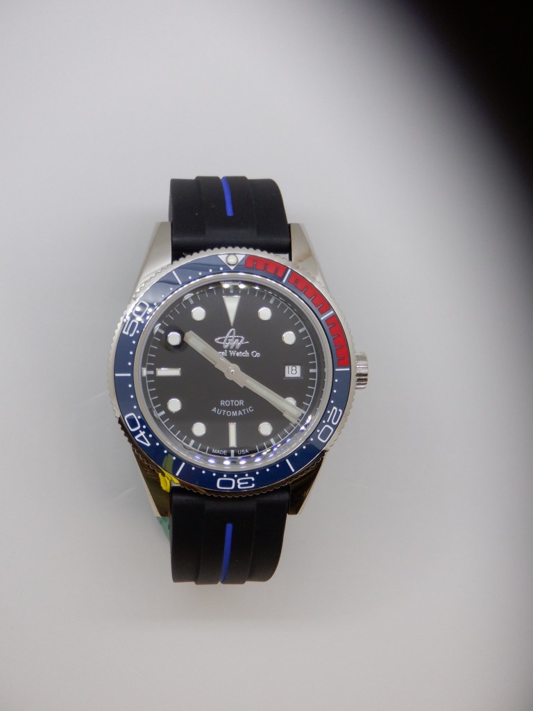 Reloj Modelo GWC M012018B, esfera azul $865.00, Reloj «GWC», completo en acero inoxidable, bisel de ceramica uni direccional, corona de rosca en acero inoxidable, tubo de caja de rosca en acero inoxidable, cierre acero inoxidable, cristal de zafiro semi curvo con aumento en la ventana del calendari que permite ampliar los numeros, esfera azul con indicadores luminicos, agujas luminicas super luminova, reloj calendario, automatico, movimiento STP 1-11 «Swiss Made», 26 rubis, medida 41.5 milimetros, reserva de marcha 44 horas, frecuencia de marcha 28,800 b/h, tapa trasera roscada con cristal estilo vitrina que permite ver el movimiento funcionando su calidad y terminacion. Cuatro anos de garantia limitada a traves de Watch Service Center. Fabricado en Estados Unidos por la compania General Watch Co, reloj de Alta Calidad «TOP OF THE LANE» y precision en nuestra marca de relojes, este reloj viene con brazalete de goma recortable con cierre de acero inoxidable y pasadores especiales tambien en acero inoxidable para facil recambio, disponible para compra en tres colores de brazalete en cuero alta calidad. Solo disponible directamente con nosotros su fabricante, no distribuimos a traves de terceros, solo lo podra comprar directamente y el servicio post venta de por vida tambien se lo ofrecemos luego de vencida la garantia, este no es un reloj mas es un reloj especial a un precio inigualable en el mercado.