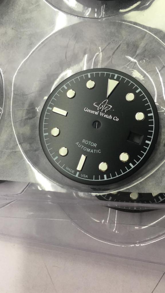 Esfera en negro con marcadores redondos en acero y centro luminoso blanco lumínico «super luminova» este puede verse en total oscuridad toda la noche, marcadores remachados a la esfera pieza a pieza, luego se ha utilizado una mezcla especial para evitar que se aflojen o suelten con el uso, logotipo en metal cromado «General Watch Co» de altísima terminación y brillo dando aspecto de lujo.